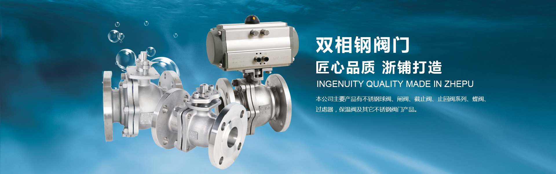 本公司主要产品有不锈钢球阀、闸阀、截止阀、止回阀系列、蝶阀、过滤器,保温阀及其它不锈钢阀门产品。主要标准有GB、API、JIS;主要材质有CF8CF8M、CF3、CF3M、2205、2507、904L、2520(310S)。产品广泛应用于化工、水处理、石油、天然气、电力、污水、造纸、矿业等领域。